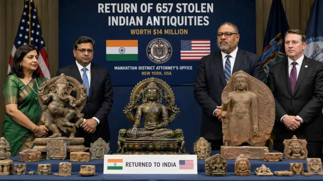 अमेरिका ने लौटाईं 657 भारतीय प्राचीन कलाकृतियां: भारत को 657 प्राचीन कलाकृतियों की वापसी केवल एक कानूनी सफलता नहीं, बल्कि सांस्कृतिक विरासत की रक्षा की दिशा में एक ऐतिहासिक उपलब्धि है।