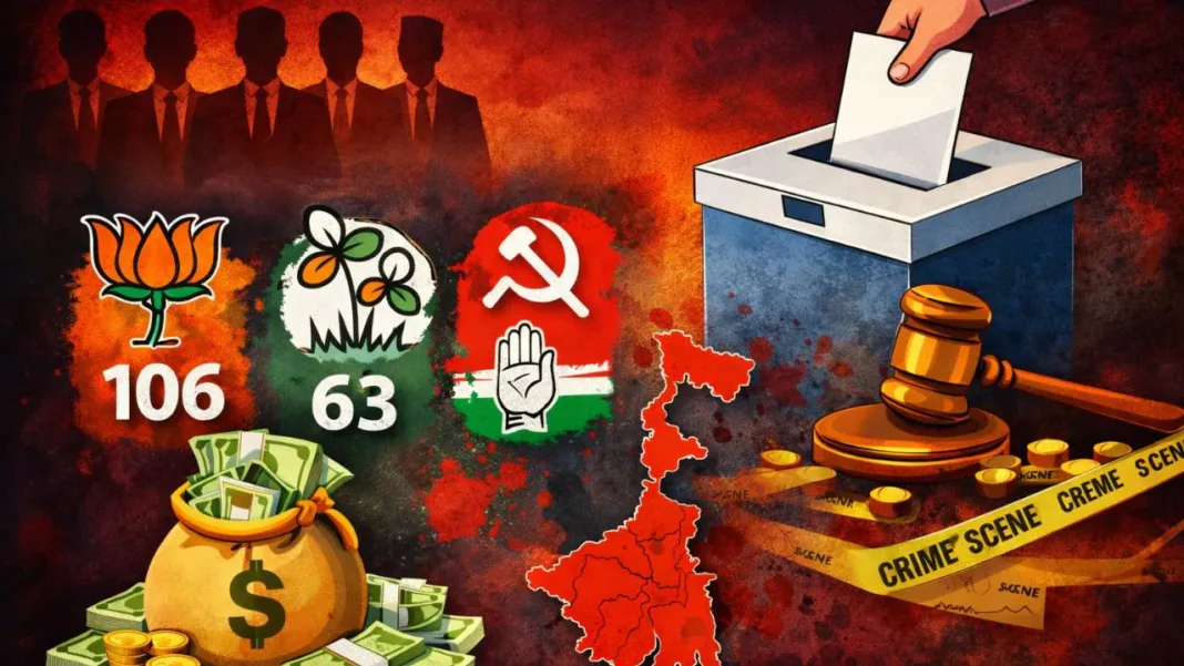 पश्चिम बंगाल विधानसभा चुनाव 2026 के पहले चरण से पहले आई रिपोर्ट ने चुनावी सियासत की हकीकत एक बार फिर उजागर कर दी है। एसोसिएशन फॉर डेमोक्रेटिक रिफॉर्म्स (एडीआर) और पश्चिम बंगाल इलेक्शन वॉच के विश्लेषण के अनुसार, चुनाव मैदान में उतरे उम्मीदवारों में बड़ी संख्या ऐसे लोगों की है, जिन पर आपराधिक मामले दर्ज हैं।