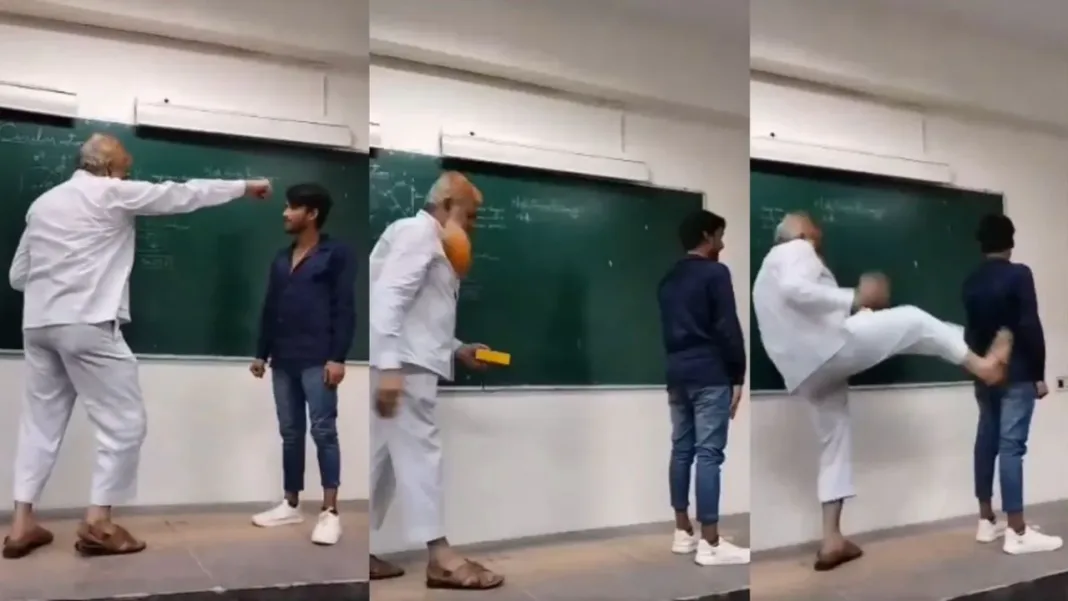 इस बीच, आरोपी प्रोफेसर का एक अन्य वीडियो भी सोशल मीडिया पर वायरल है, जिसमें वह एक छात्र को कक्षा के भीतर लात मारते हुए दिखाई दे रहे हैं।