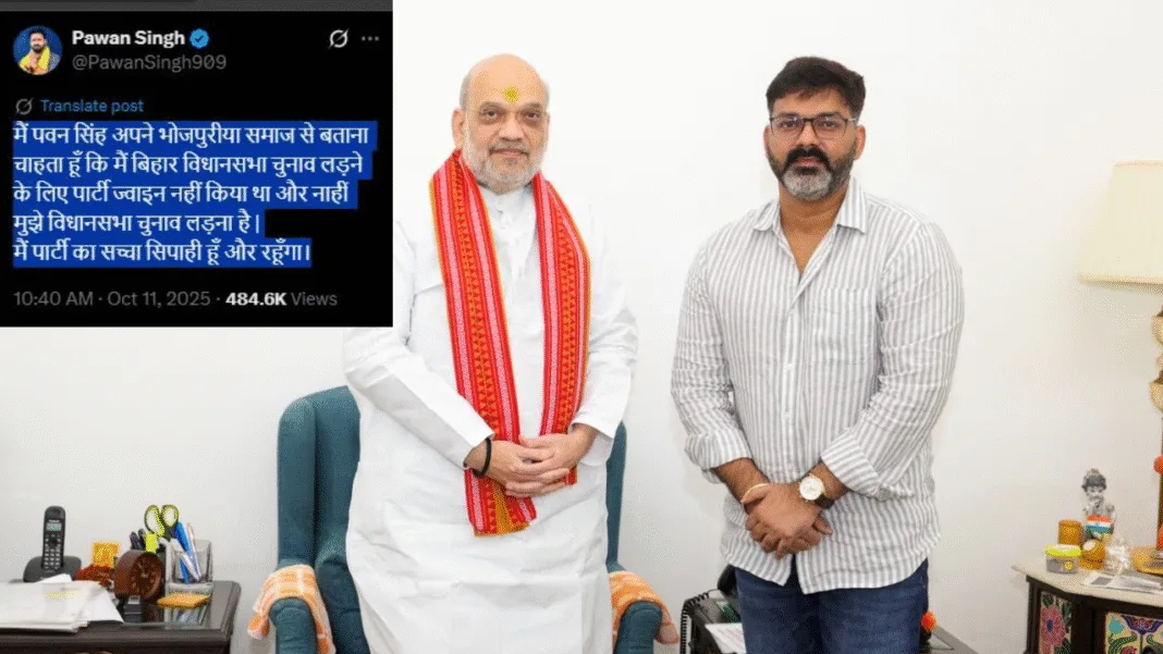 शनिवार सुबह सोशल मीडिया प्लेटफॉर्म X (पूर्व में ट्विटर) पर पवन सिंह ने अमित शाह से मुलाकात की तस्वीर साझा करते हुए लिखा कि “मैं पवन सिंह अपने भोजपुरीया समाज से कहना चाहता हूं कि मैं विधानसभा चुनाव लड़ने के लिए पार्टी में शामिल नहीं हुआ था और ना ही मुझे चुनाव लड़ना है। मैं पार्टी का सच्चा सिपाही हूं और रहूंगा।”