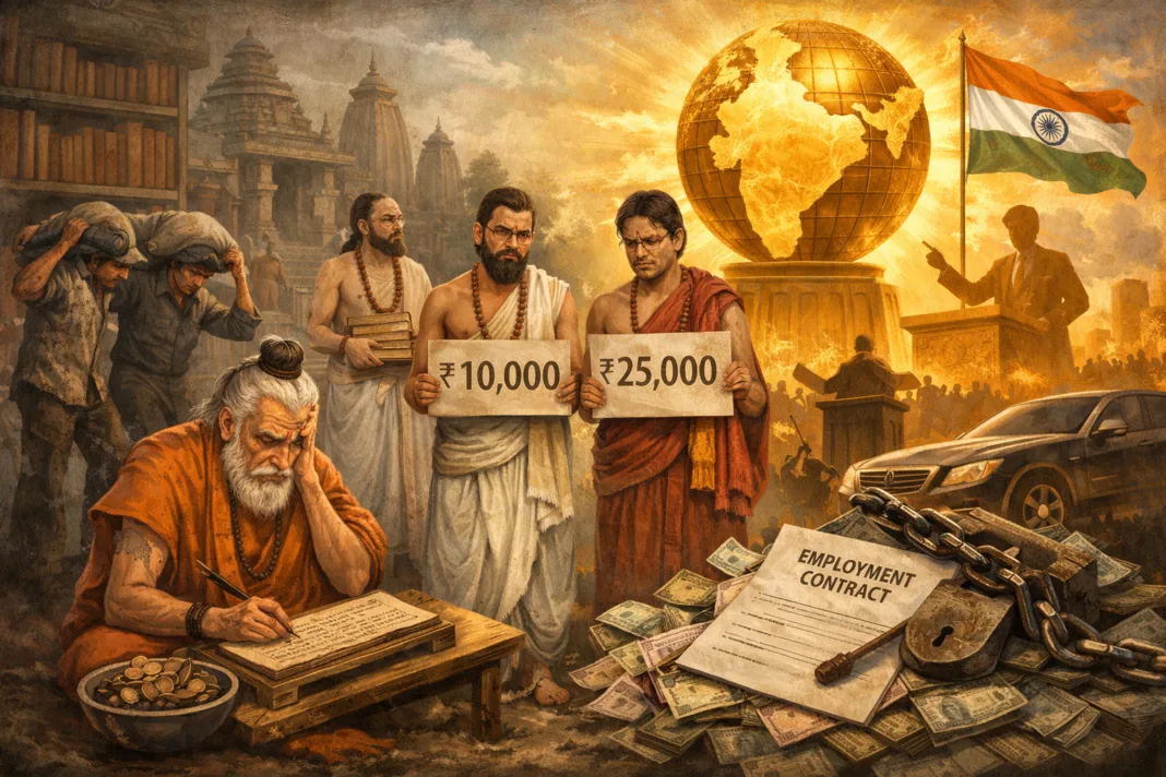 जिस देश में सरकार एक सफाई कर्मचारी या सुरक्षा गार्ड के लिए बीस हजार रुपये से अधिक का न्यूनतम वेतन तय करती है, उसी देश में वेदों और दर्शन के मर्मज्ञ विद्वानों को दस हजार रुपये की ‘भीख’ दी जा रही है। क्या यही ‘विश्वगुरु’ भारत की परिकल्पना है?