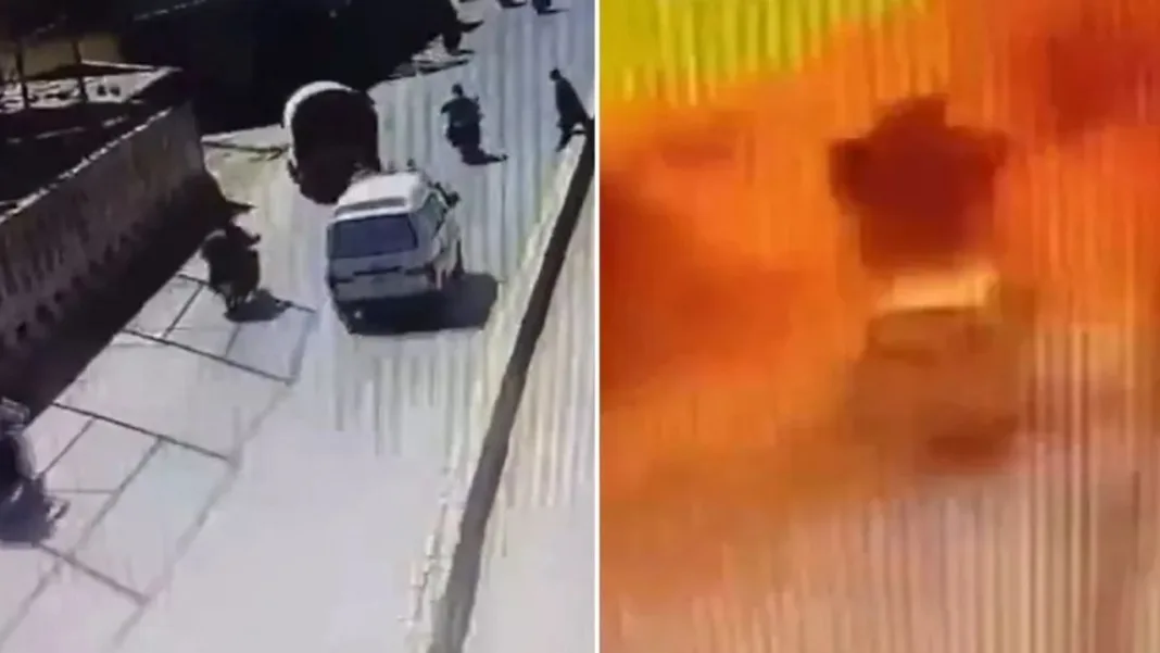 घटना से जुड़े सीसीटीवी फुटेज में देखा गया कि एक हमलावर फ्रंटियर कॉप्स के हेडक्वार्टर के सामने चलते वाहनों के बीच खुद को उड़ा लेता है।